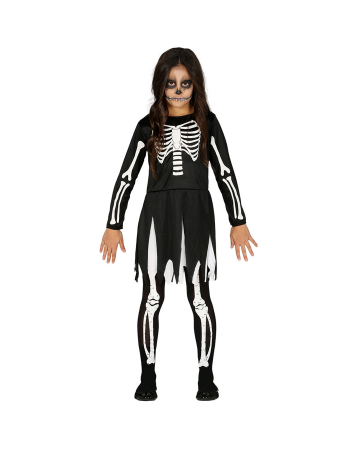 Knochen Mädchen Kinder Kostüm als klassische Verkleidung für die Halloween Party | Mit dem Skelett Kostümkleid zum Trick or Treat | ALLES für Halloween!!