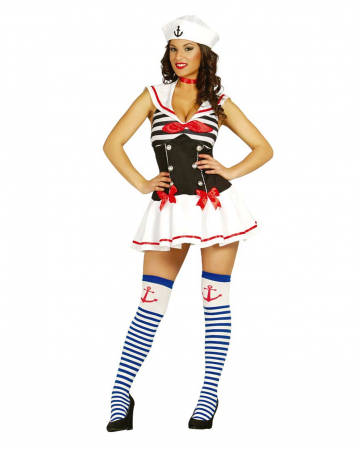 Schwarz-weißes Matrosin Kostüm als Verkleidung für Fasching | Kaufe jetzt Seefahrer Verkleidungen von Karneval-Universe.de!