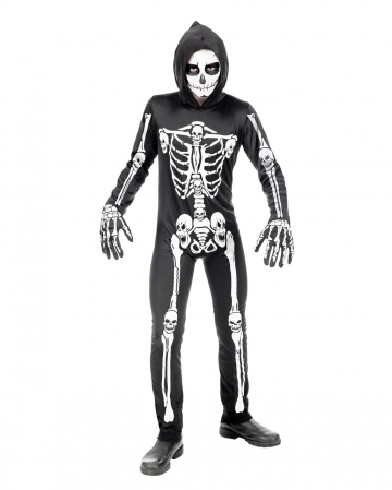 Skelett Overall Kinderkostüm | Overall mit Kapuze und Knochengerippe Motiv als Halloween Kostüm | SCHNAPPT euch den Klassiker unter den Gruselkostümen!