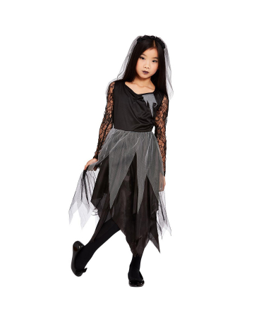 Fetziges Friedhofsbraut Kostüm für Kinder | Schwarzes Kostüm Kleid als creepy Geisterbraut Kostüm | Halloween Verkleidungen für Kids & Erwachsene shoppen!