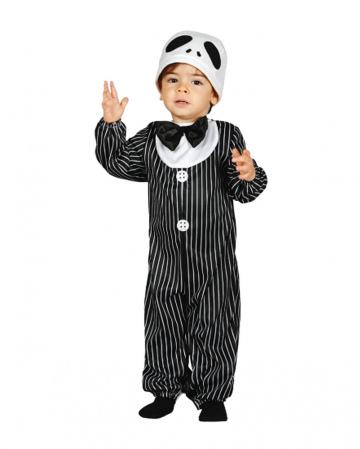 Kleinkinder Kostüm Mr. Skeleton in schwarz-weiß als Karnevals & Halloween Verkleidung für die Kleinen. Reizendes Skelett Kostüm mit Totenkopf Haube und Nadelstreifen Strampler im Karneval Universe
