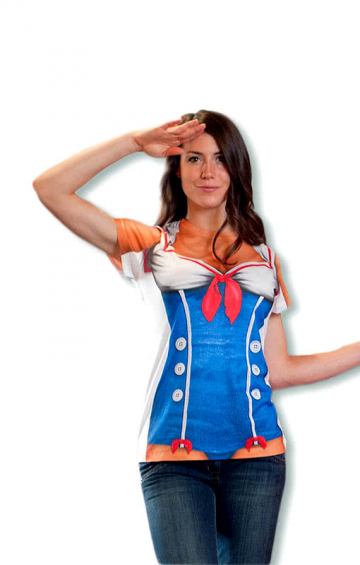 Das Seemannsbraut Shirt zeigt einen kurvigen Damenkörper in einem blauen Kleidchen mit roten Schleifen. Jede Menge Auswahl an lustigen T-Shirts bei uns im Shop.