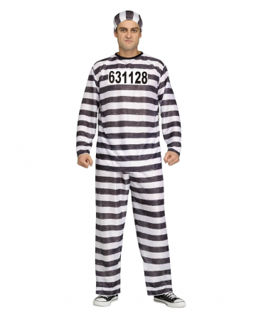 3-tlg. Häftlingskostüm um dich als Strafgefangener zu verkleiden. Klassisches Kostüm für Halloween, Fasching und Karneval von karneval-universe.de