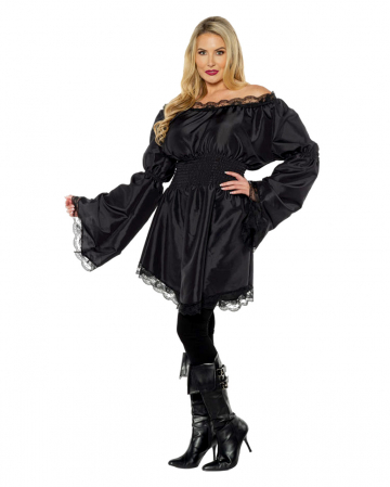 Longshirt Spitzenbluse schwarz | Blusenkleid mit Rüschen als Basis für viele Kostüme | Zubehör für dunkle Fee & schwarze Witwe finden | HIER klicken!