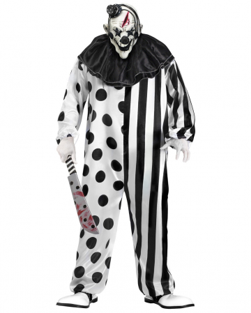 Killer Harlekin Kostüm für den Halloween Fan. Gestreiftes Clown Kostüm mit Horrorclown Maske von Karneval-Universe.de