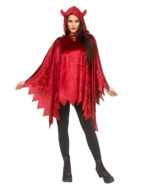 Roter Teufelsponcho mit Kapuze aus Samt