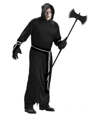 Schwarzes Sensenmann Kostüm mit Kapuze