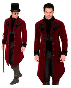 Bordeauxroter Gothic Mantel als Kostüm